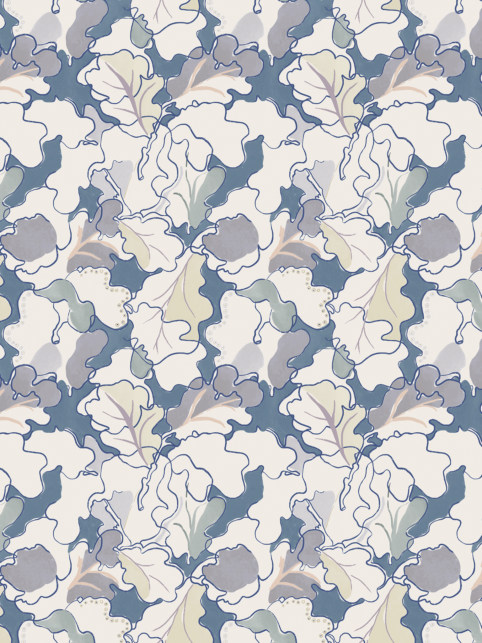 Adagio wallpaper is a contemporary botanical design inspired by overlapping oak leaves. A modern composition with nature-led forms, the layered design creates depth and movement, while beautifully balanced tones bring a sense of calm.