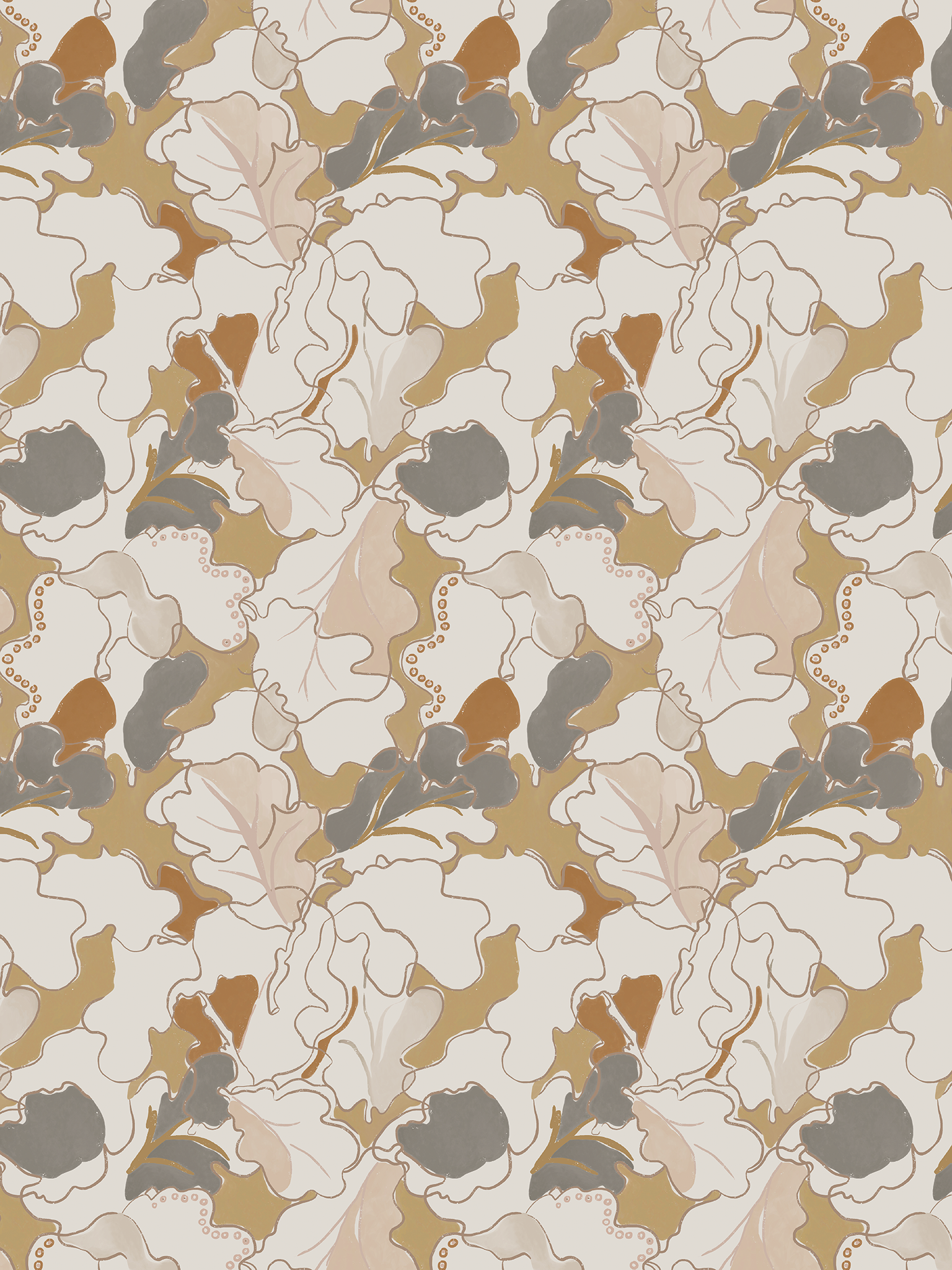 Adagio wallpaper is a contemporary botanical design inspired by overlapping oak leaves. A modern composition with nature-led forms, the layered design creates depth and movement, while beautifully balanced tones bring a sense of calm.