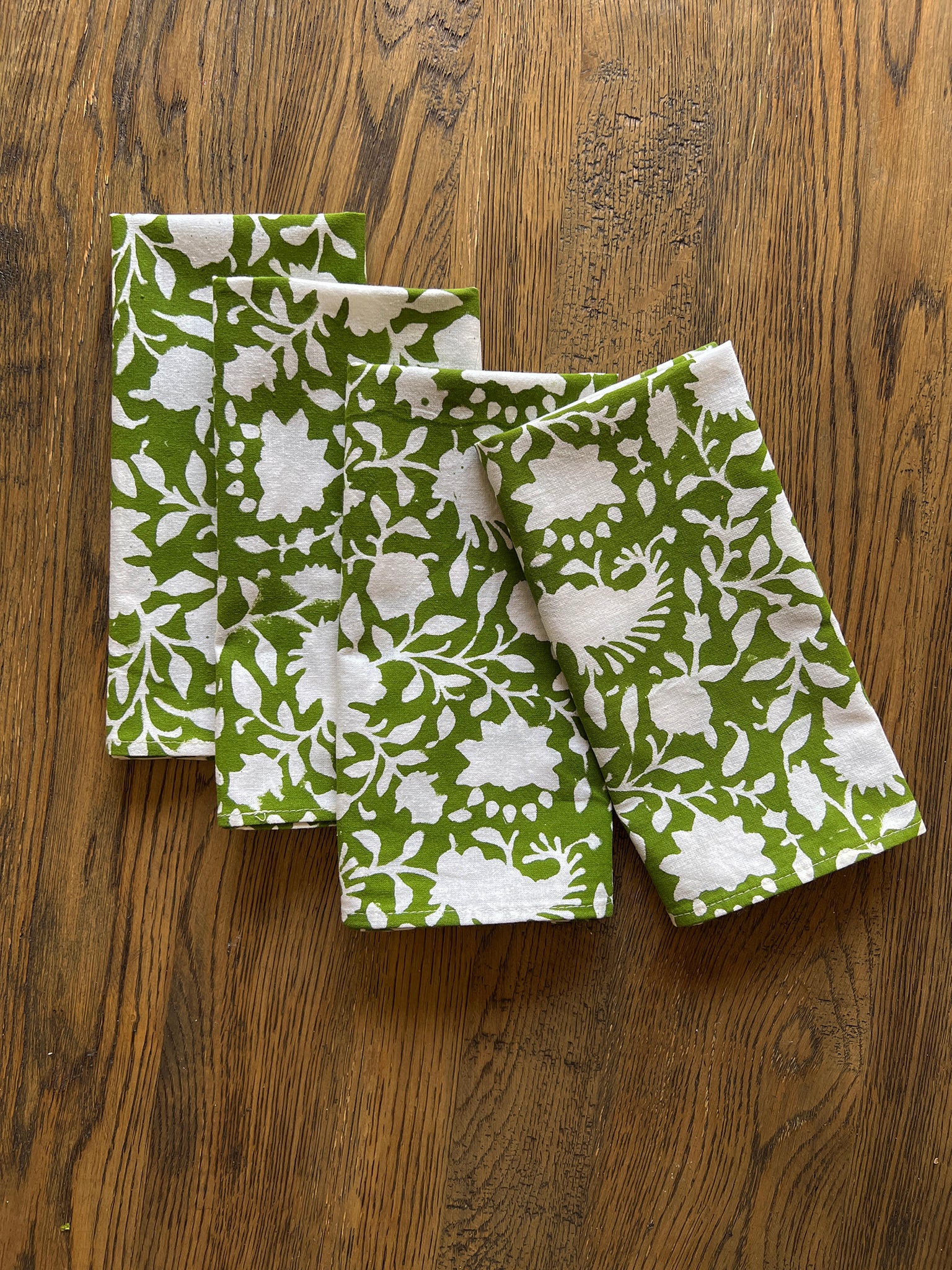 Block Printed Napkins Set of 4, Secret Garden in Green