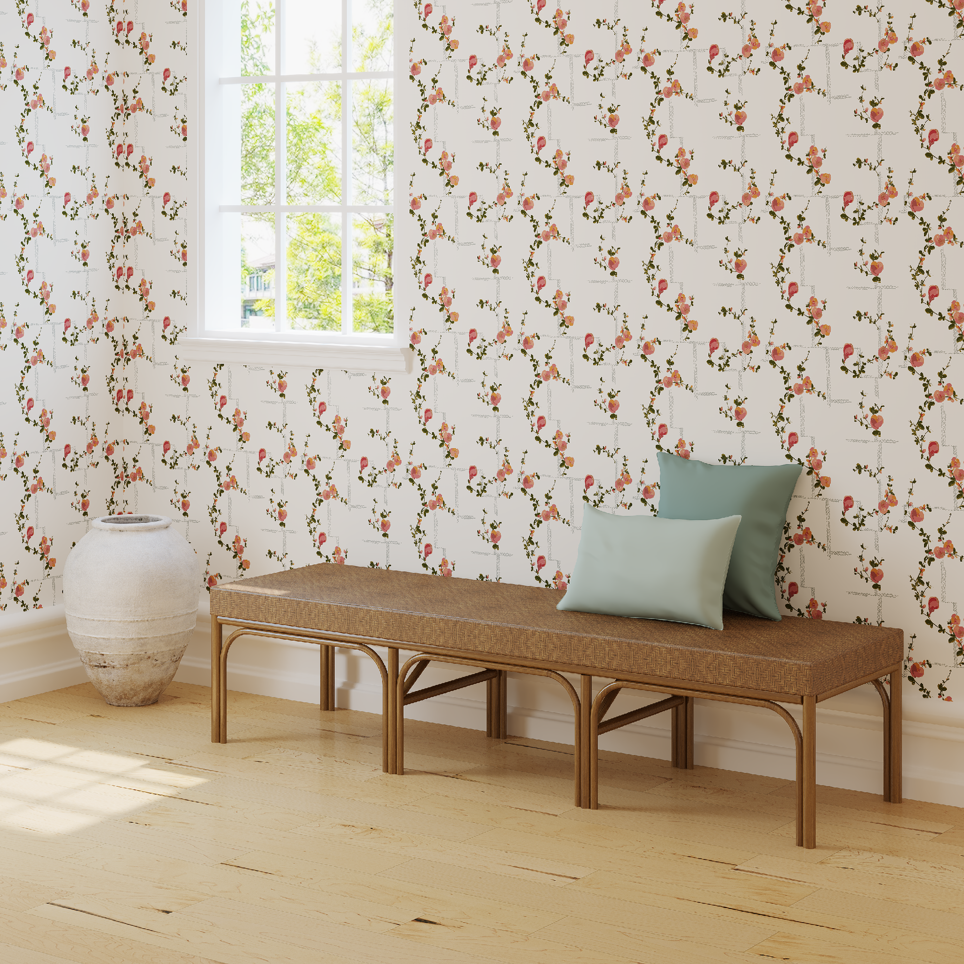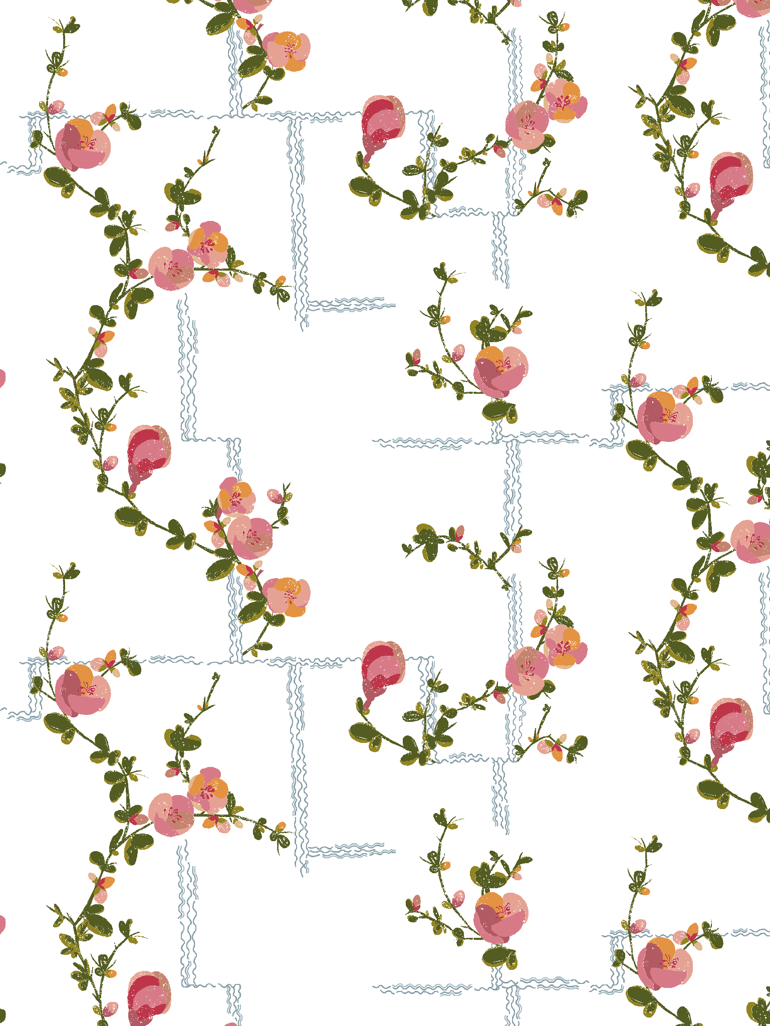 Coco was inspired by the Japanese quince bush that blooms in one corner of Lizzet's garden. We were able to transfer the unique details of the original hand drawn flowers and combine it with a warm colour palette, making it an incredibly charming floral wallpaper design.
