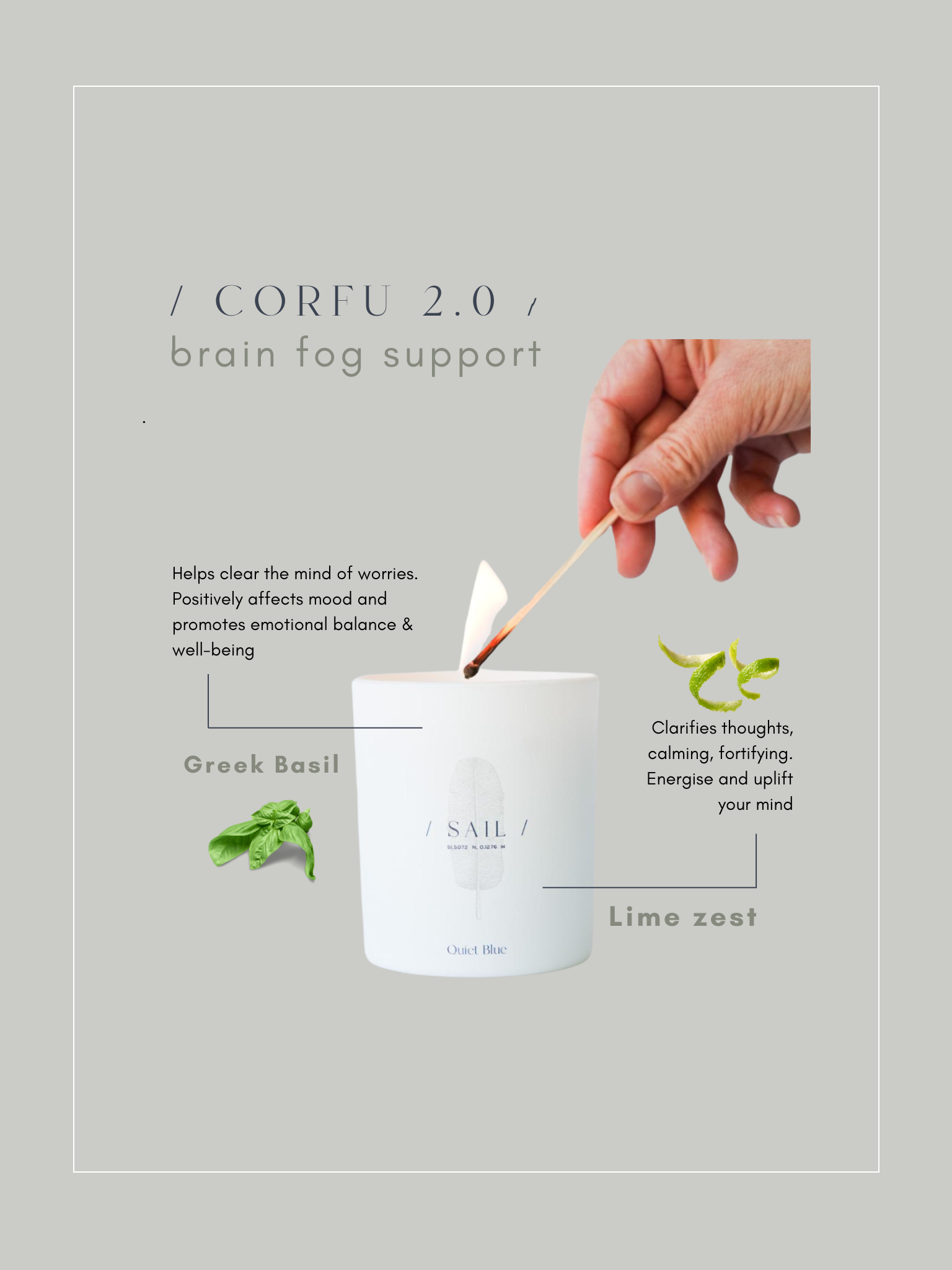 Light up your evenings, your office, or any space with Corfu and experience the luxurious scent and calming atmosphere for yourself. Get rid of brain fog and fatigue once and for all and let Corfu restore your focus today.