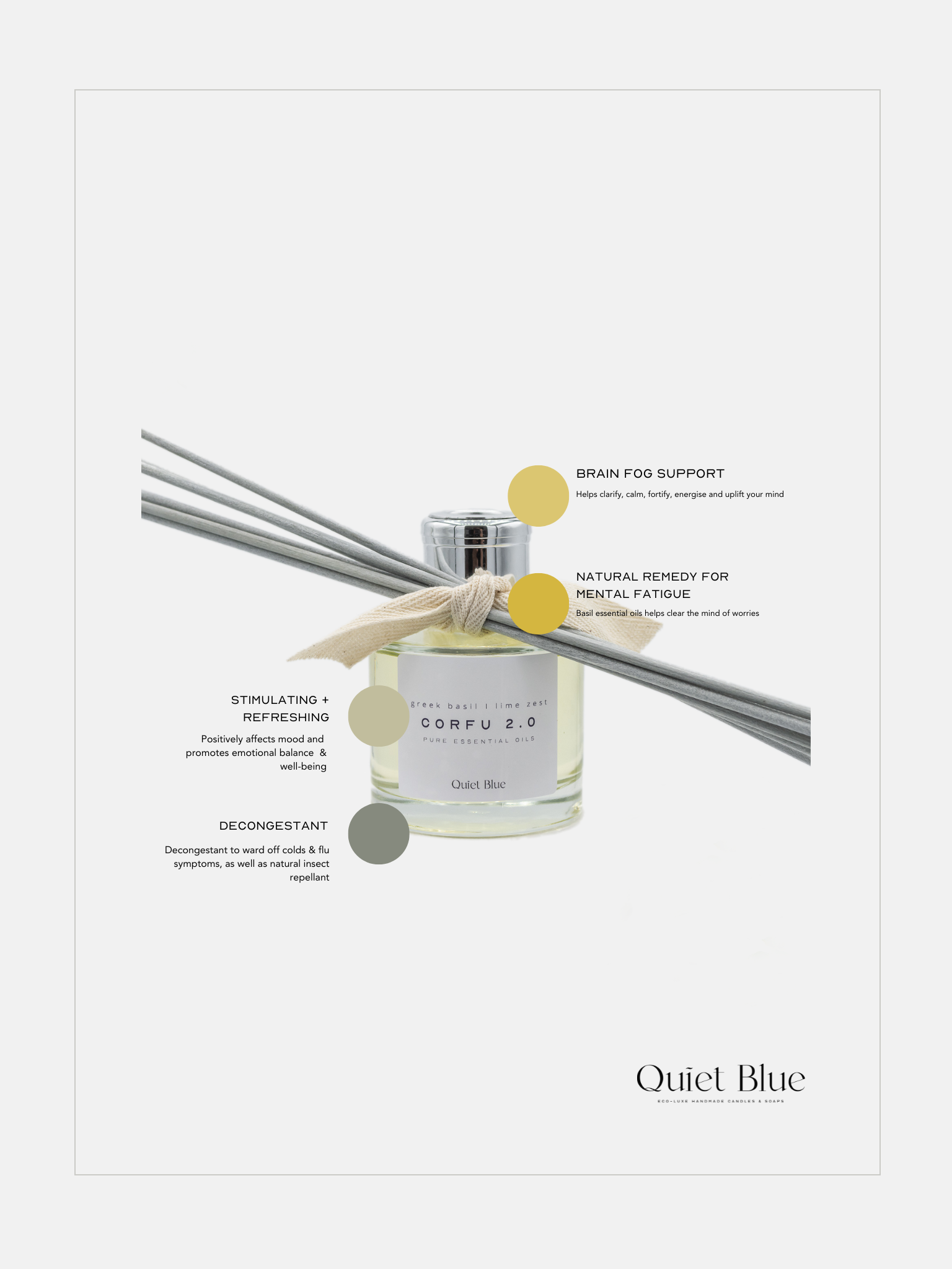 This reed diffuser is the matching scent to the Corfu Soy Wax Candle.