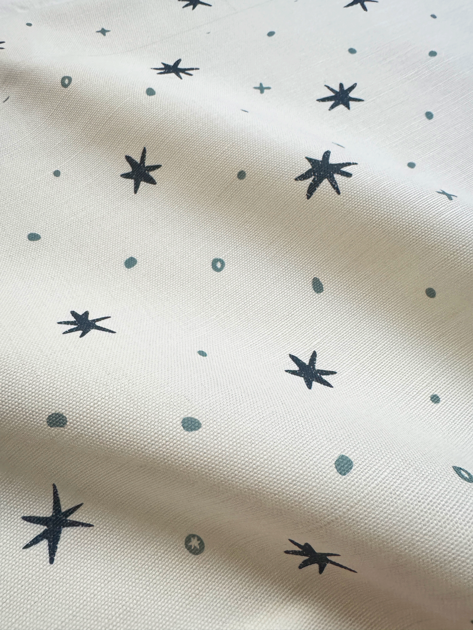 This simple design is as modern as is classic. Both playful and fun, this starry design is printed on a perfect blend of linen and cotton for a soft yet strong feel. It's available in different colourways and is part of the Solaris Collection.