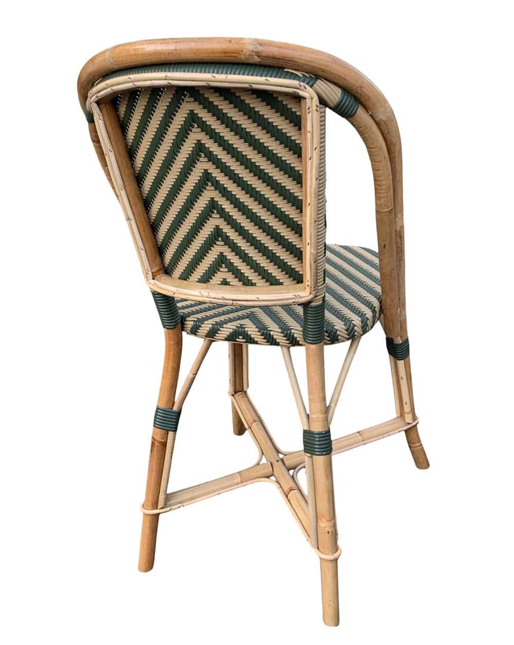 The classic Parisian bistro chair, reinvented. True to its roots, each rattan frame is crafted in a time-honored technique perfected by the French, bent and shaped by hand until the iconic shape is achieved.