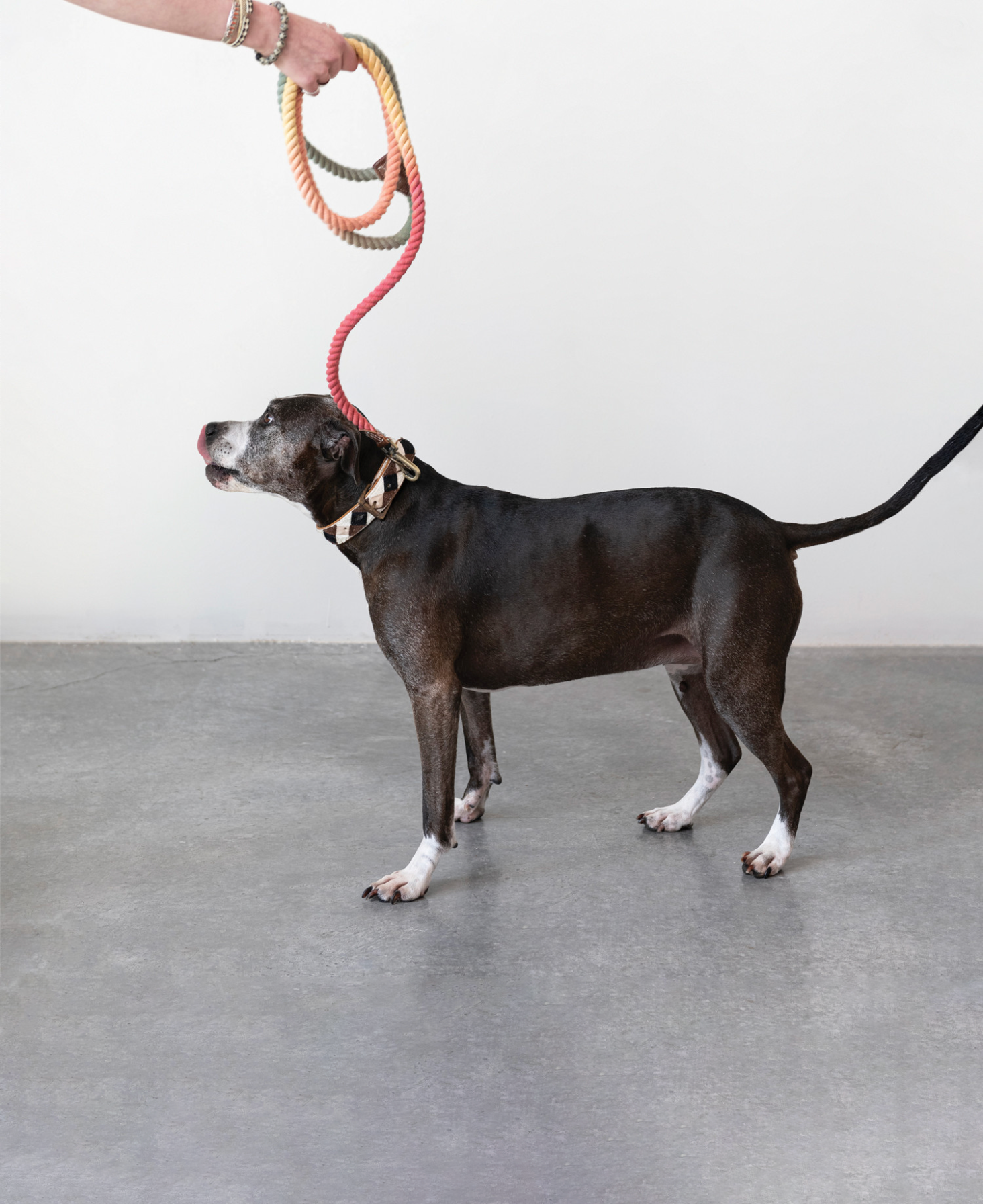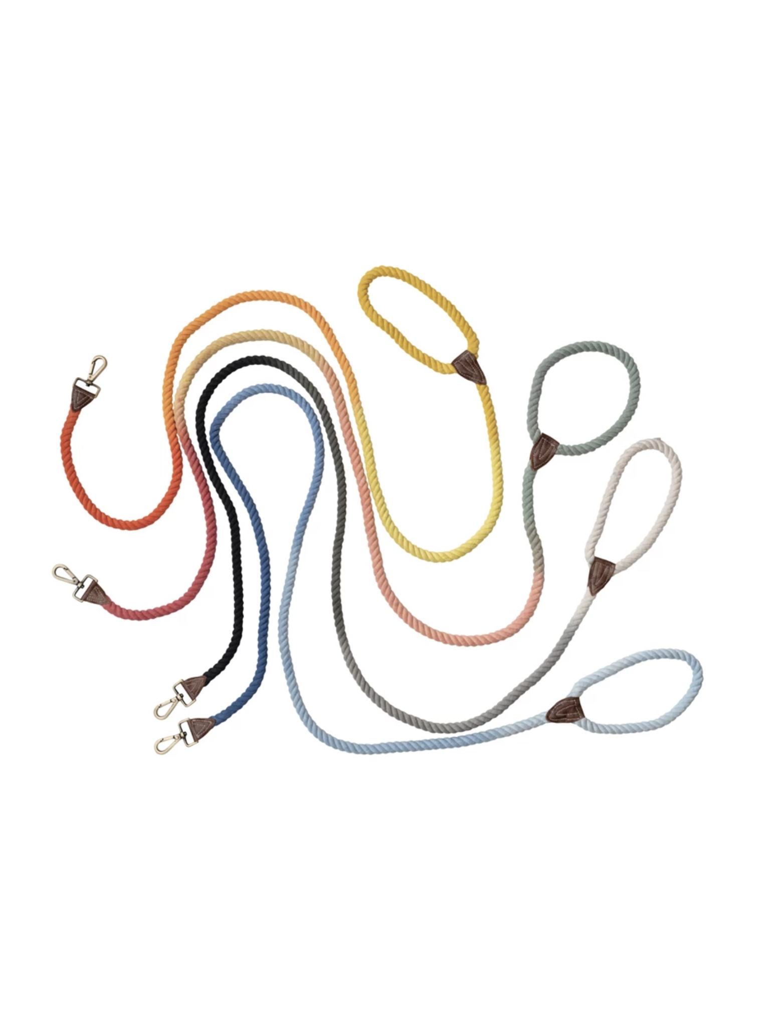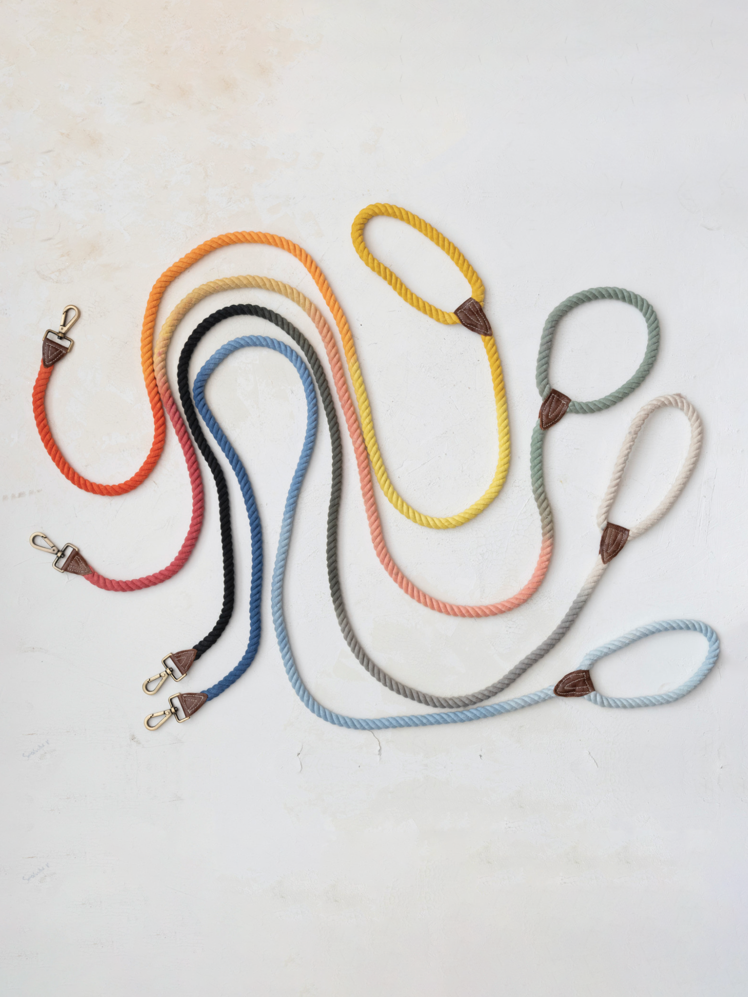 Stylish handcrafted and hand dyed ombre rope dog leash with metal crash and leather