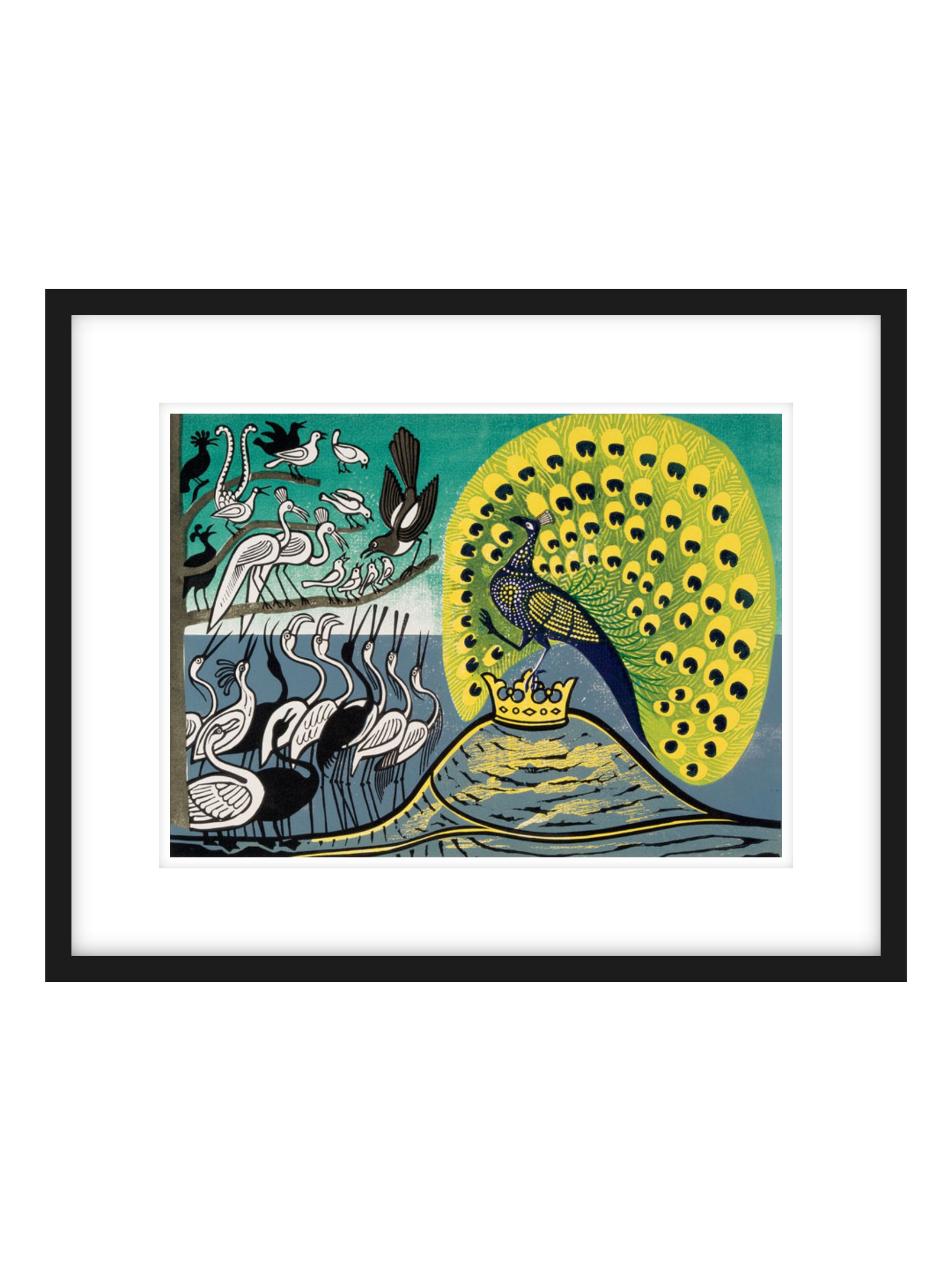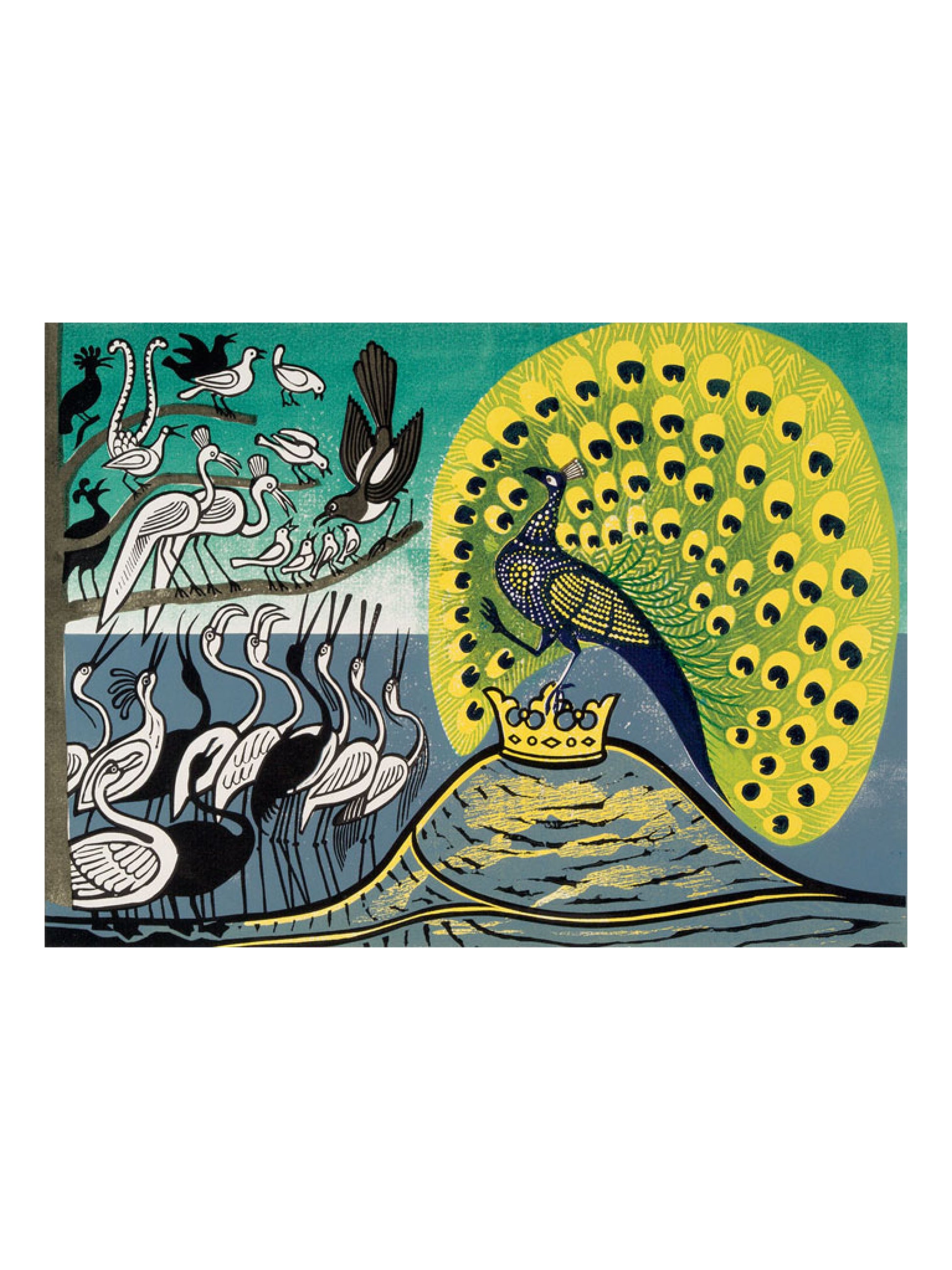 The Peacock has suggested to the others that he is made king, but the Magpie wonders whether, if this is agreed, the Peacock could really protect them against the eagles. The moral? Never ignore the advice of others.