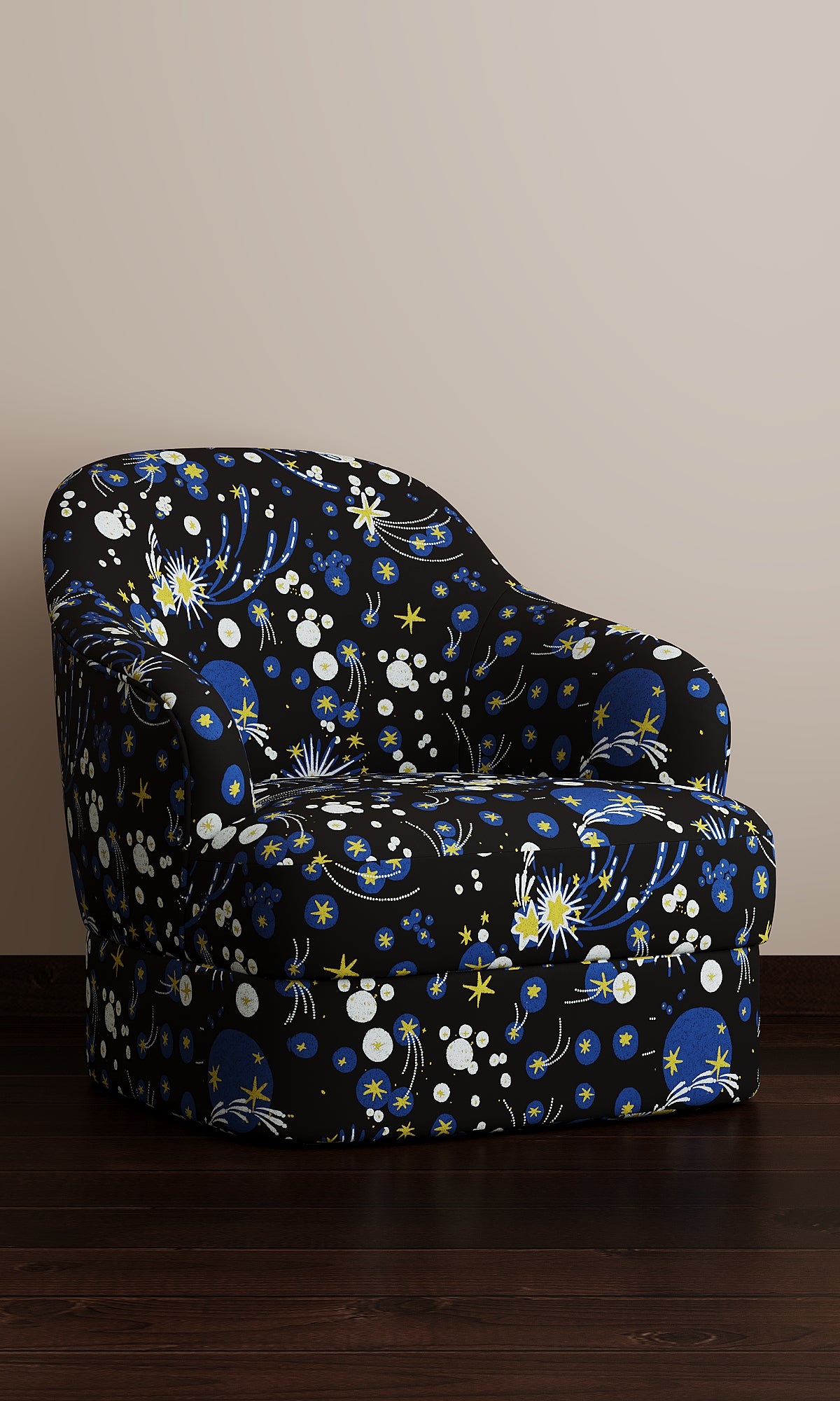 This bold and starry design was inspired by the simplicity of Japanese woodblock print and the naivety of some medieval stars found on ceiling and arches of ancient churches.