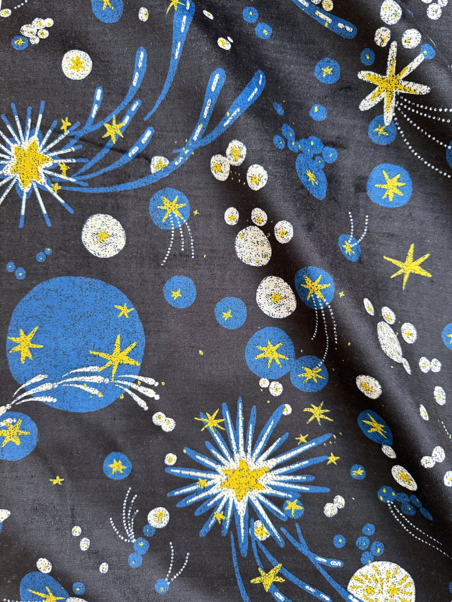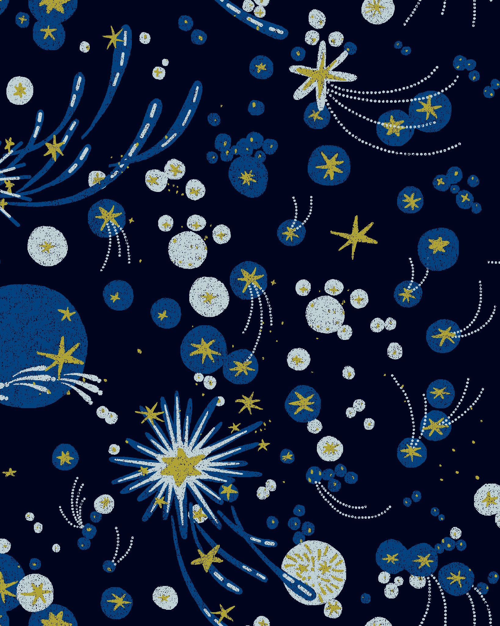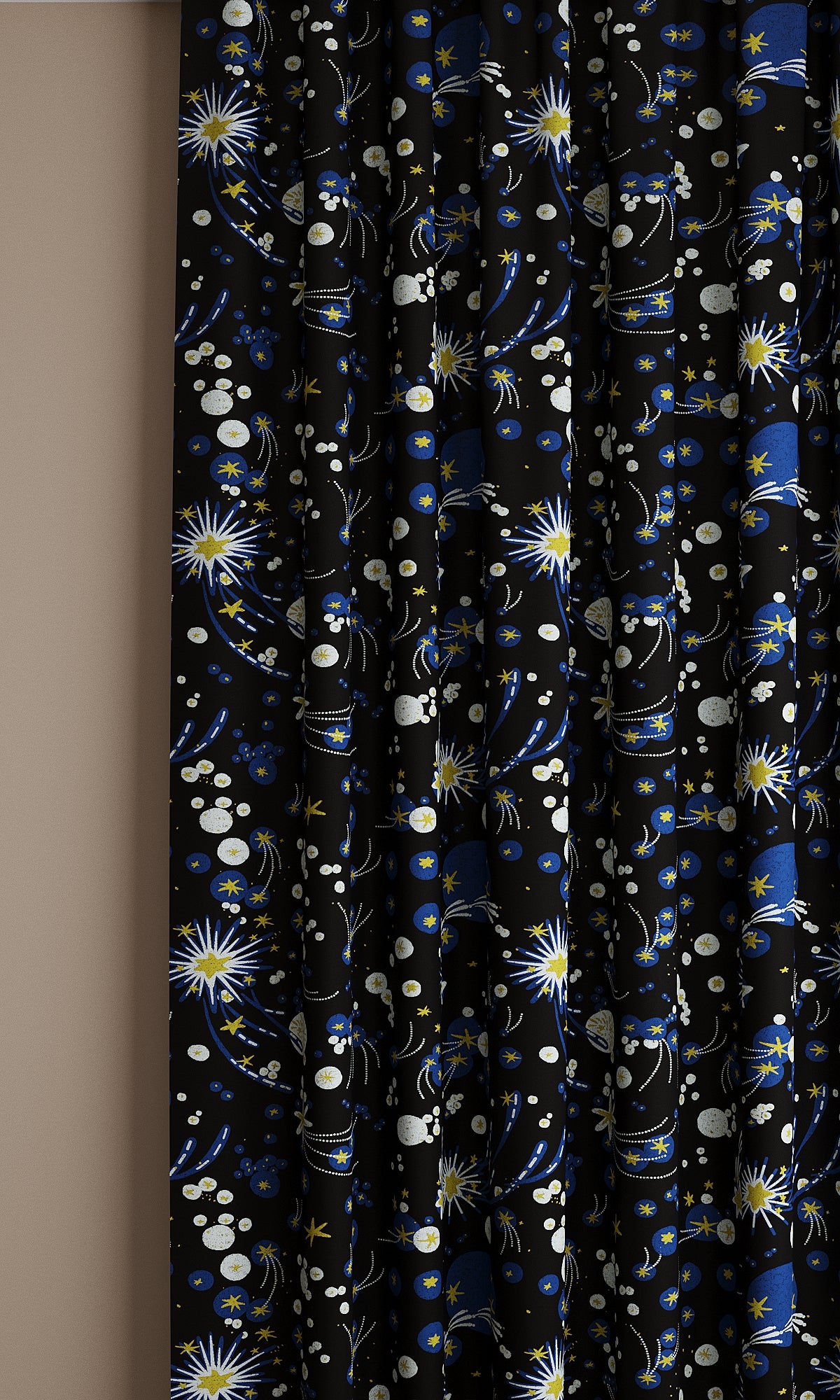 This bold and starry design was inspired by the simplicity of Japanese woodblock print and the naivety of some medieval stars found on ceiling and arches of ancient churches. Both playful and fun, this design is printed on velvet for a soft and luxurious feel.